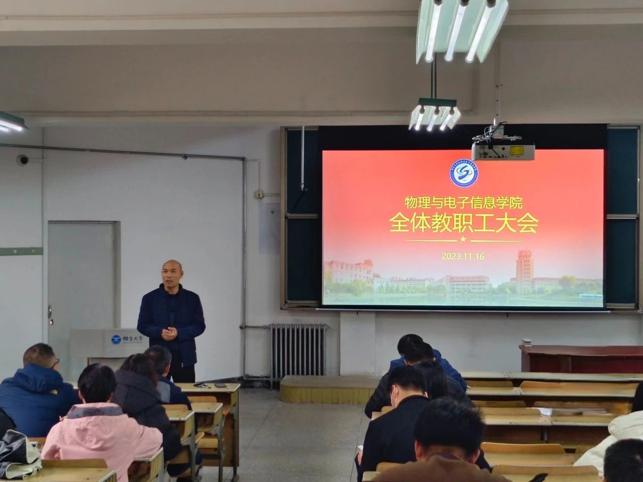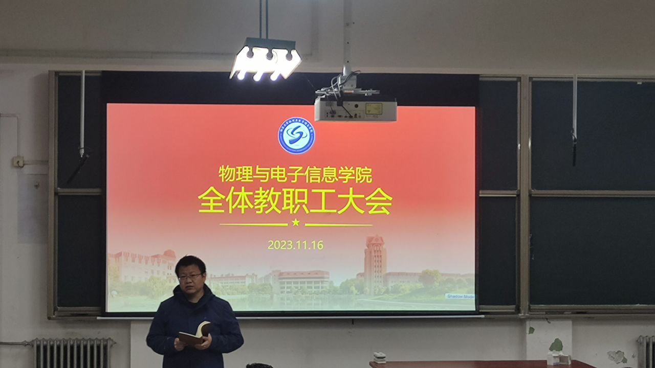 在四教101召开全院教职工大会,晋刚副院长在会上传达了“自拍流出