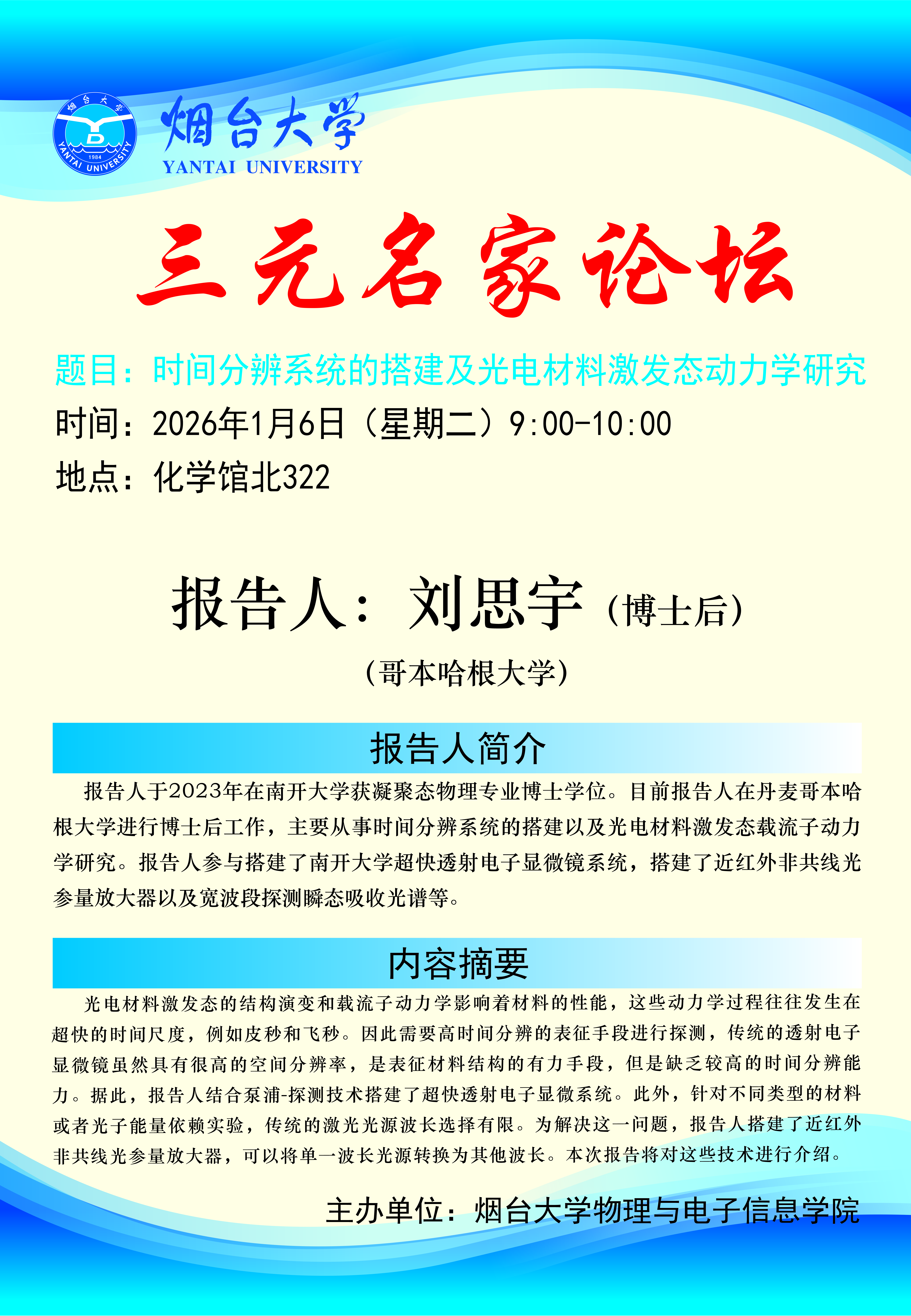 讲座时间:2026年1月6日(星期二)9:00-10:00