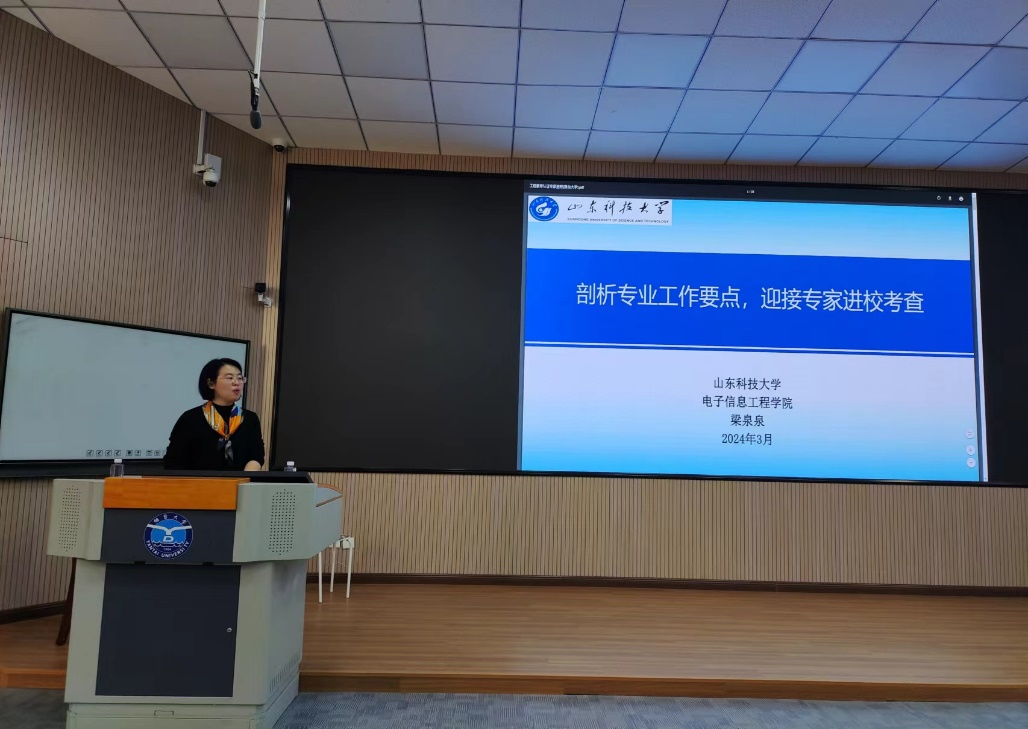 为全面深入推进电子信息科学与技术专业认证工作,迎接工程教育专业认证委员会专家线上考查,3月7日下午,物理与电子信学院邀请山东科技大学电子信息工程学院通信工程系主任梁泉泉副教授来校做专题培训。学院党政领导、专业负责人、专业认证工作组、专业任课教师和辅导员40余人参加会议,会议由教学副院长晋刚主持。